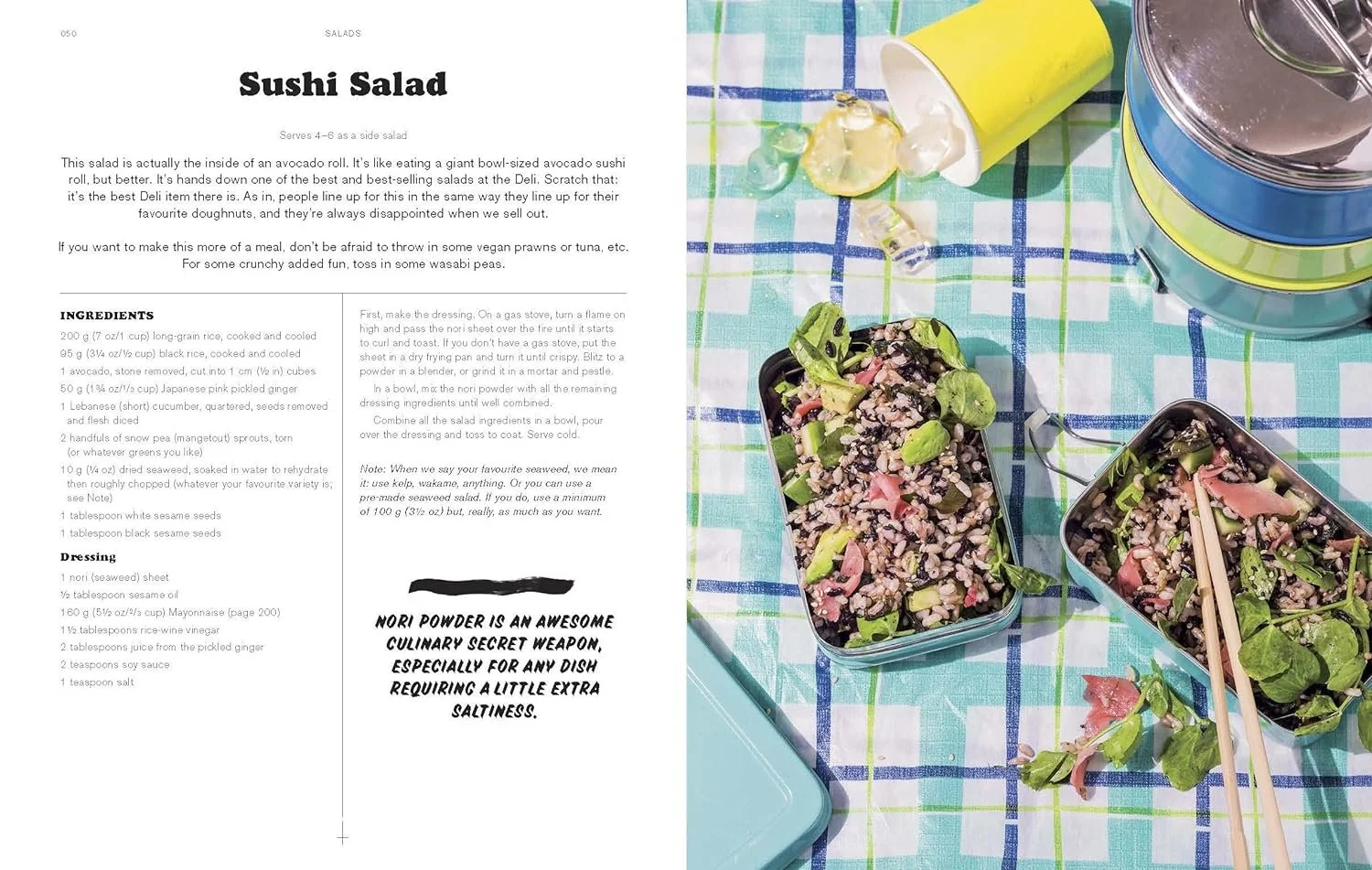 This is one of the first ever vegan cook books I bought. It is the book that made me fall in love with vegan food. I couldn’t believe that all my favourite deli foods (think sandwich fillings, pies, pastry’s and condiments) could be made even better than the original non-vegan versions! The Sushi Salad is delicious!